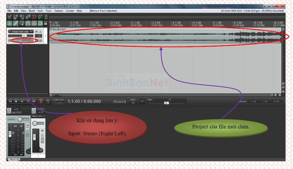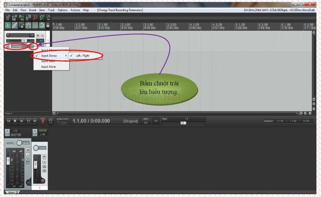 Lưu ý: để Track ở chế độ Input: Stereo (Right/Left), nếu muốn có âm thanh ở Right/Left bằng nhau.