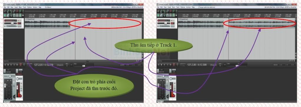 Tiếp tục việc thu âm sau khi đã kết thúc một đoạn: