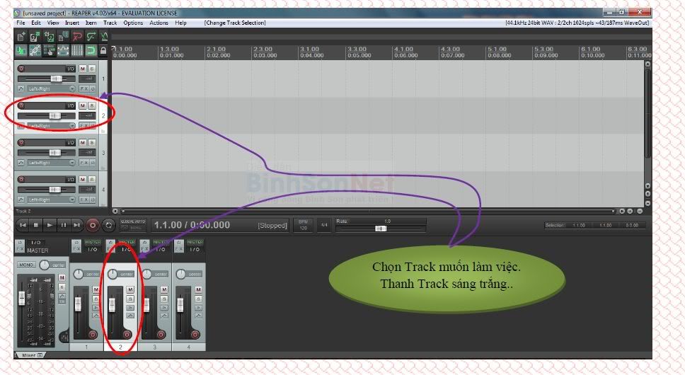 Khi đang làm việc với nhiều Track, muốn chèn nhạc, video hoặc thu âm trên thanh Track nào thì cần phải chọn vào Track đó