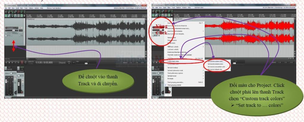 Để thuận tiện trong quá trình chỉnh sữa âm thanh, có thể mở rộng thanh Track hoặc đổi màu cho Project.