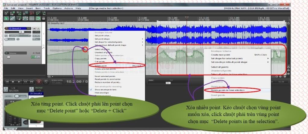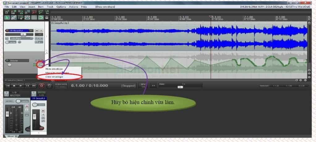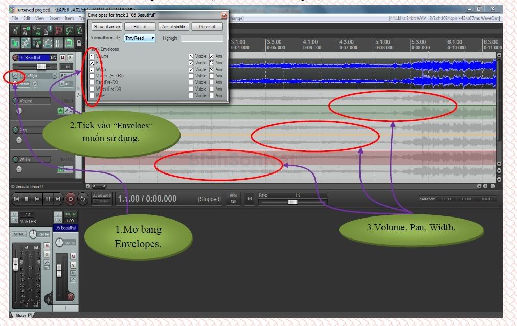 Cách 1. Ví dụ trên Envelopes Volume (Pan và Width tương tự).