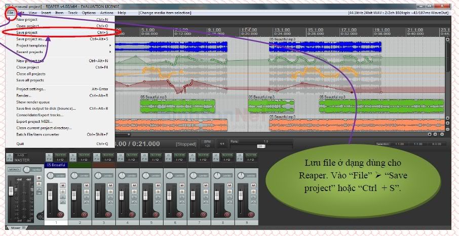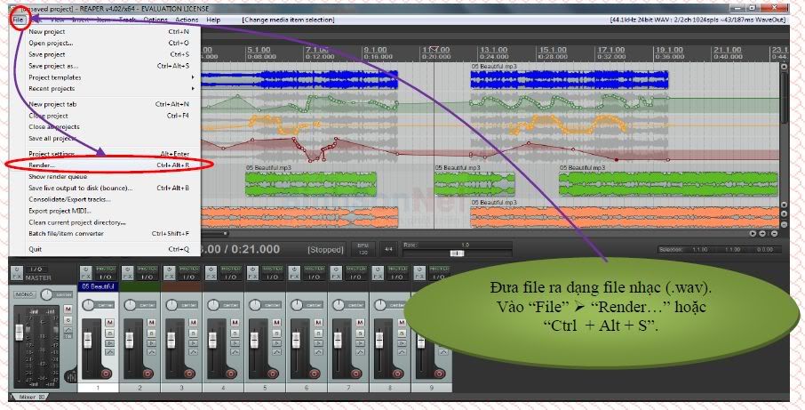Khi hoàn thiện sản phẩm cần lưu ở dạng file dùng cho Reaper hay in ra dạng file nhạc.
